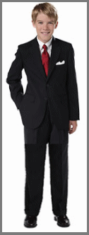 The boys must wear a suit coat and necktie. A blue blazer and gray trousers (or any color) or pants, such as Dockers or Dickies trousers are acceptable. It is not required for boys to wear a matching suit.
